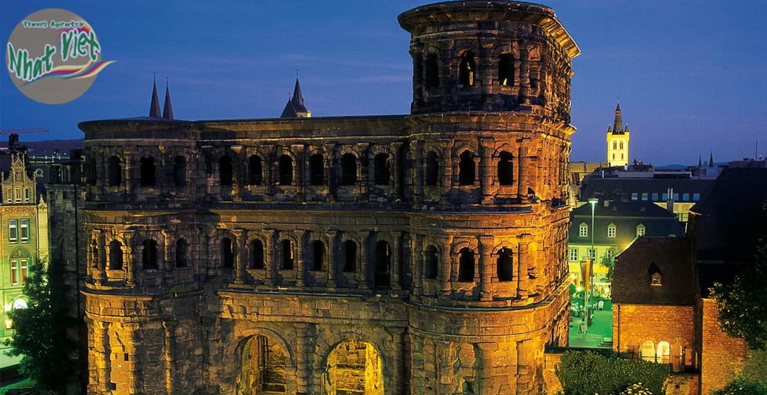 Porta Nigra: Cổng thành đen - Là một cổng thành lớn thời La Mã. Năm 1986 được Unesco công nhận là di sản thế giới, di tích La Mã. Được xây dựng trong màu xám đá sa thạch giữa 186 và 200 sau Công nguyên.